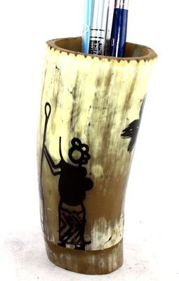 Prix unité: Pot à crayon. Corne bovine décorée . Réceptacle ...